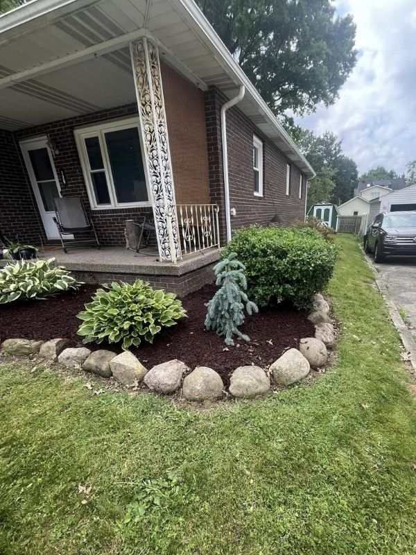 We offer weekly & biweekly lawn mowing, fertilization & weed control, mulch installation, gravel installation, bed cleanups, hedge trimming, spring refreshes, fall cleanups, dethatching, and aeration & overseeding.